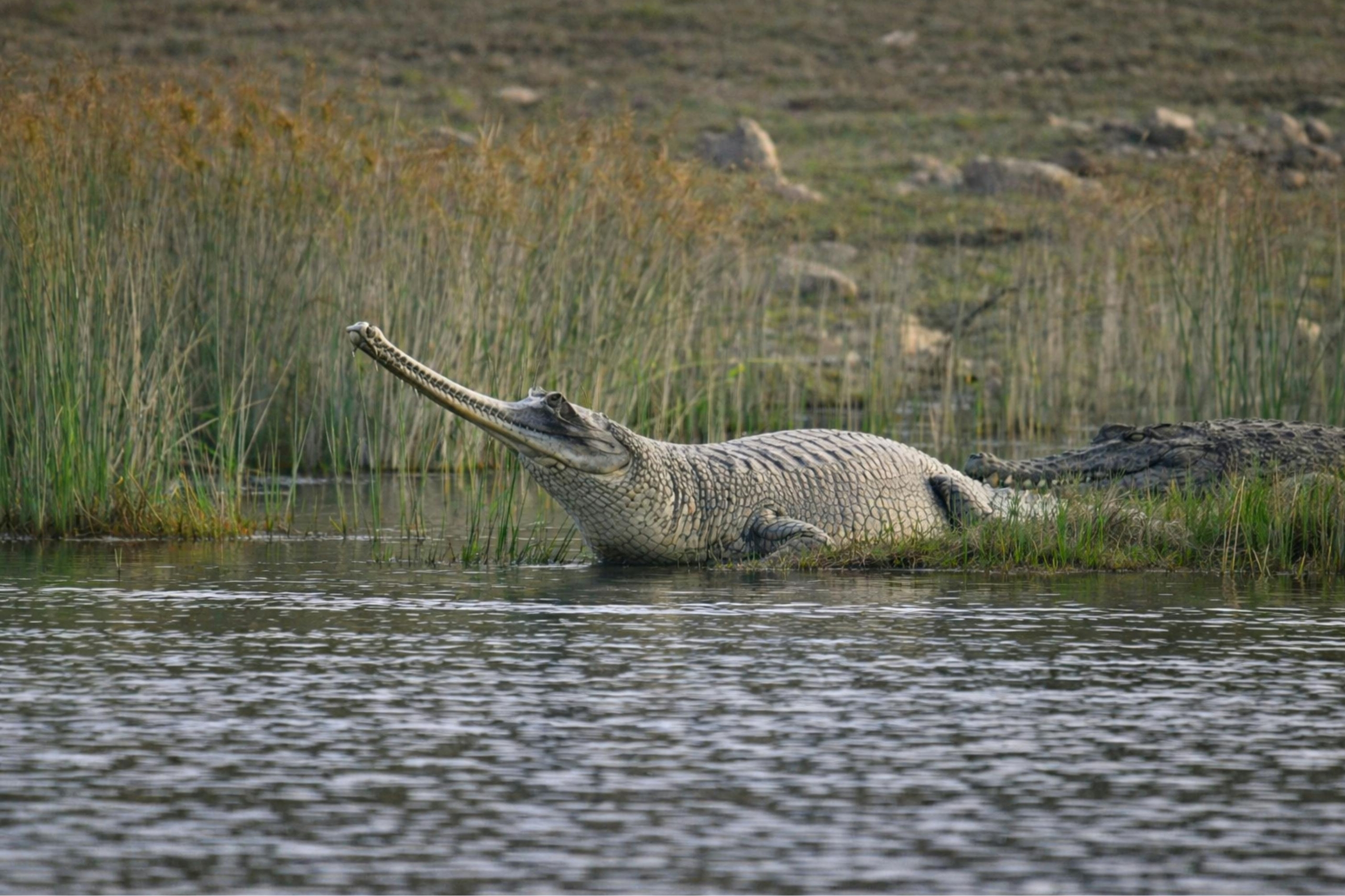 Spot gharials, crocodiles, turtles, and dolphins (if lucky)